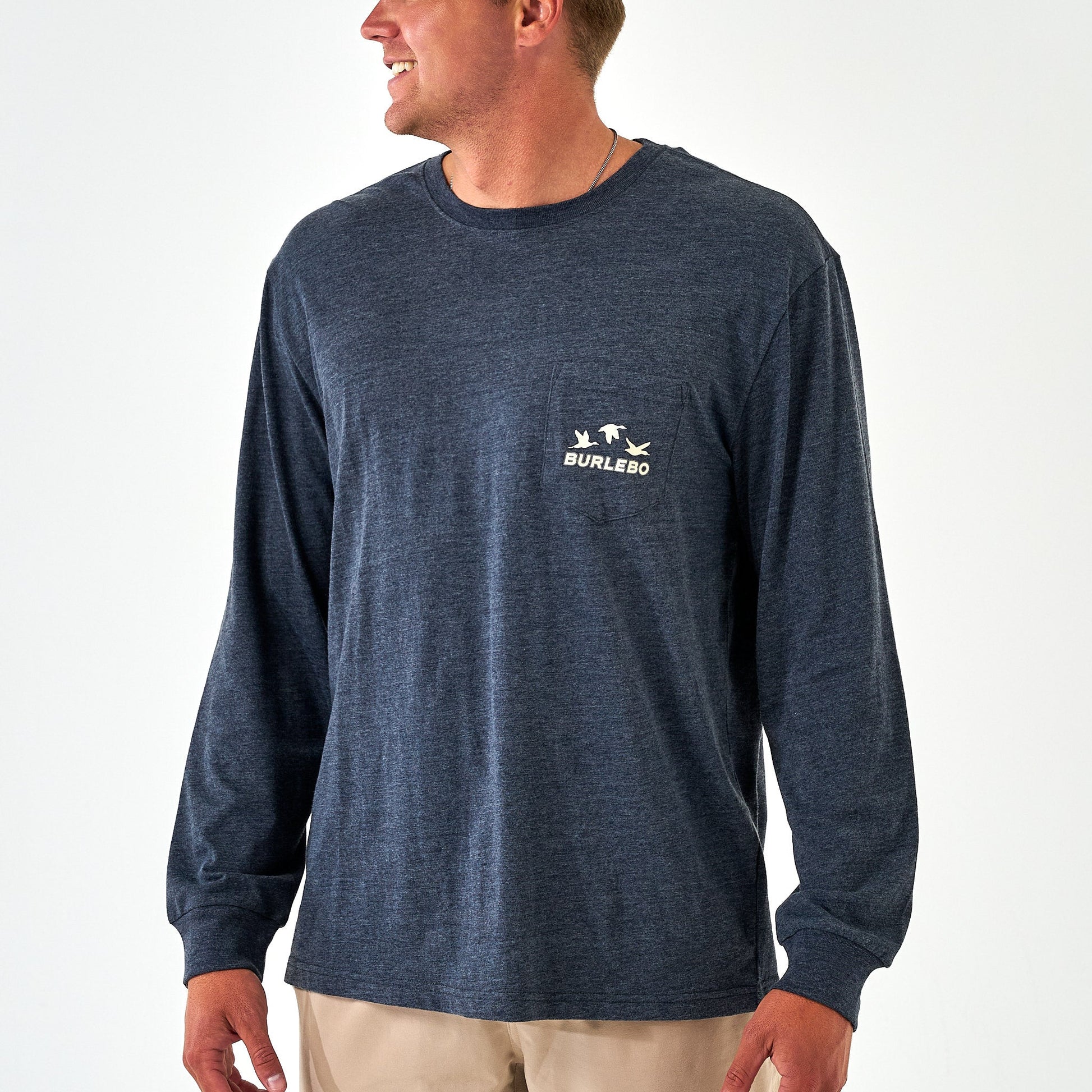 Long Sleeve Pocket Tee from the Fall ‘24 Collection, designed for comfort, style, and versatility. Made from a preshrunk blend of 50% Ring-Spun Cotton and 50% Polyester, this tee offers the perfect combination of softness and durability. It is perfect for everyday wear or layering under your favorite jacket or hoodie. Designed to run true to size, our Long Sleeve Tee ensures a comfortable and flattering fit for all body types.