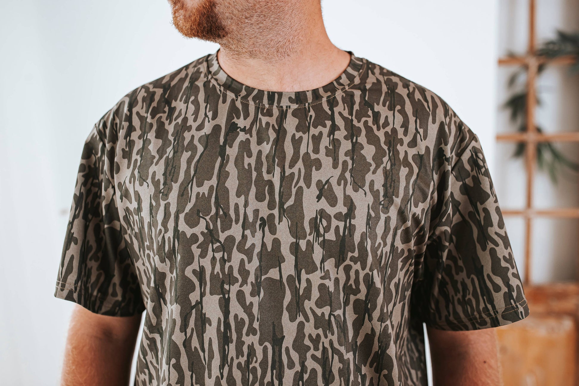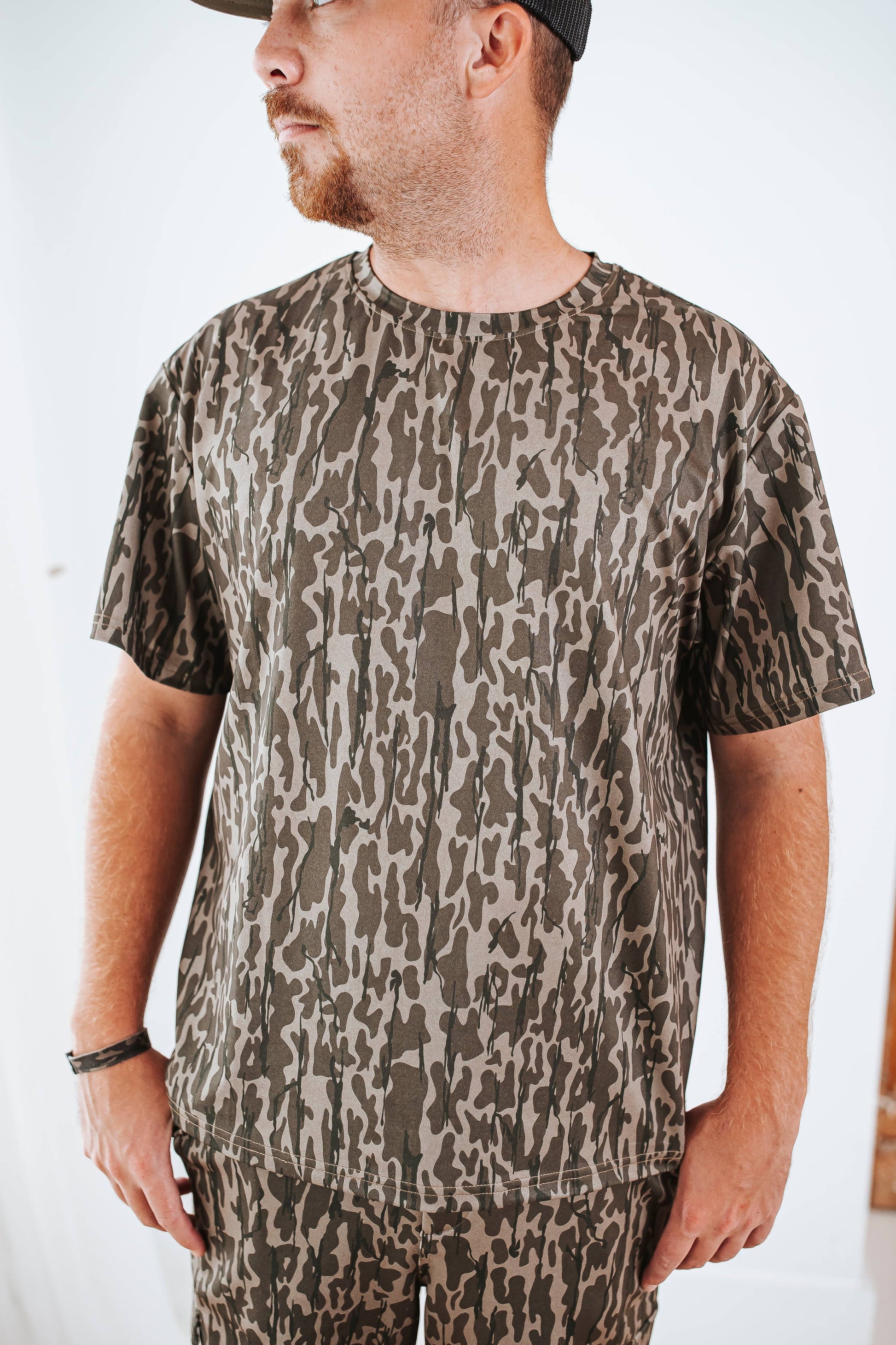* Style: Classic crew neck with full camo coverage.